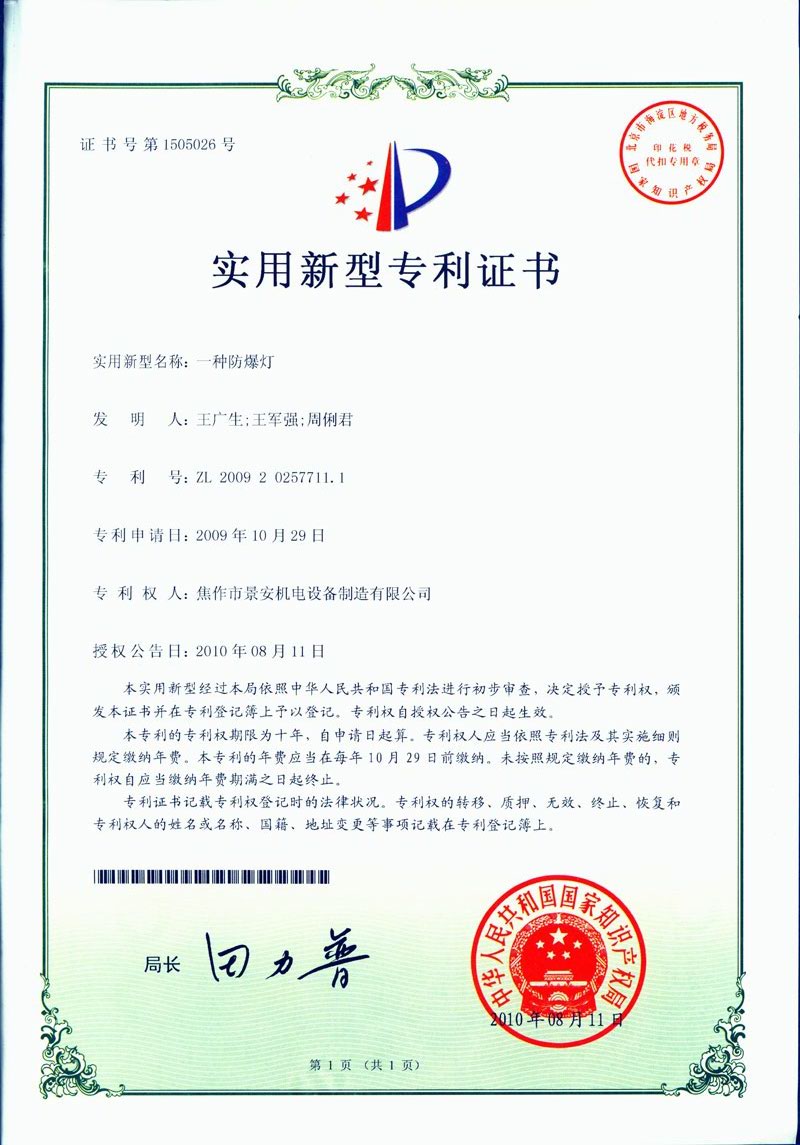 焦作景安公司始終堅持“以科技為先導(dǎo),以市場為導(dǎo)向”的發(fā)展戰(zhàn)略,不斷進行新產(chǎn)品的研制和開發(fā),在國家“六五”到“九五”期間,承擔和參與了國家多項科技攻關(guān)項目,產(chǎn)品的技術(shù)和質(zhì)量一直處于全國同行業(yè)領(lǐng)先位置。并被中國電器工業(yè)協(xié)會評定為“質(zhì)量可信產(chǎn)品”。特別是在礦用防爆燈領(lǐng)域,礦用隔爆型半導(dǎo)體(LED)照明燈具,2008年列入國家火炬計劃,獲2009年河南省工業(yè)和信息化廳的科技成果二等獎,并擁有多項國家專利。 |